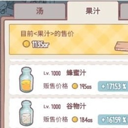 游戏中的汤的级别还能提高,价格与质量也会变化,因此研发出来以后大家还可以想办法升级这些,提高了以后能买的价格高了,赚钱的速度就快了,高质量还能收获不少好评。