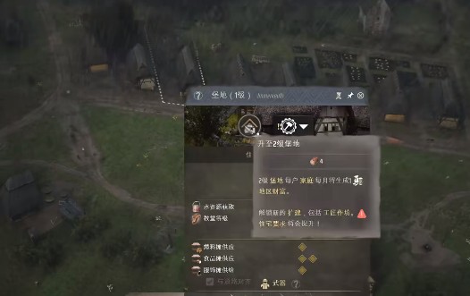 在建造堡地的时候可以框大一点,会有3种图标显示,房子中间带虚线的意思是能够拓展工作坊,房子带加号的意思是后续这个房子可以扩大拥有更多人口,第三种有实线隔开的是指能够修建多座房子,建议考虑前期的房子都是扩容带工作坊的规格。