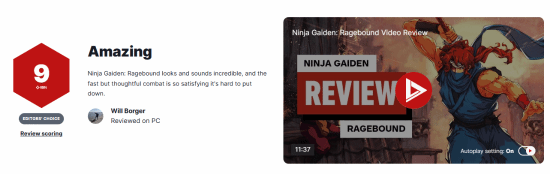 值得一提的是,我站为《忍者龙剑传外传:怒之羁绊》打了8.2分,认为它并不只是一次对2d忍龙的致敬与还原,而是在对原作核心有精准理解的基础上,进行一番现代化改造的优秀作品,感兴趣的玩家可以点击下方链接进入查看。