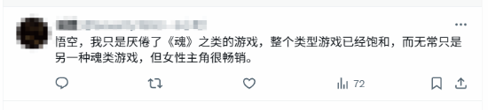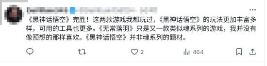 那些更喜欢《黑神话:悟空》的玩家表示,该作的机制、技能、玩法都更加优秀,更加丰富,而且类魂游戏已经饱和了,会让人厌倦