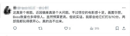 还有一些玩家则认为,没有必要非得争个长短,两款游戏各有特色,且类型不同,无法客观的比较。