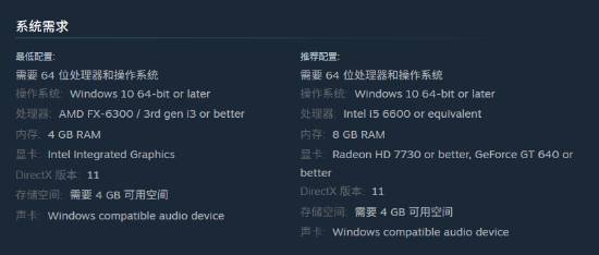 steam商店页面也公开了本作的官方推荐的pc系统要求