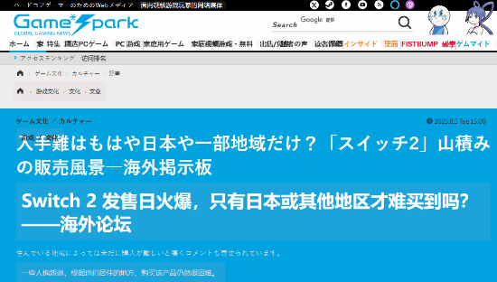 日媒game*spark报道了这一消息,并表示在日本国内仍有很多地方一机难求。自6月5日正式发售以来,任天堂的新一代主机ns2在日本国内就一直处于供不应求的状态,时至今日仍在采用“抽赏”的方式贩卖。