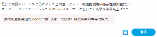 “各国之间的配货和需求平衡真的差很多……像澳大利亚、德国那边的reddit用户,发售当天就有晒出店里现货照片的了。”
