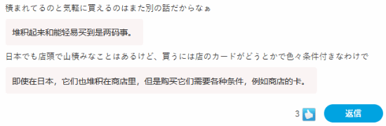 在这条新闻的下面,有玩家表示:“像搞抽赏这种事,大概也就日本才有吧。虽然在海外也可能不好买,但应该没日本这么夸张。其实很早之前,世界各地就已经开始流出这种堆货的照片了。日本这边还在为抽赏抢购而哀嚎的时候,某位主播却在法国轻轻松松地就买到了。”