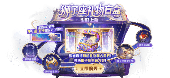 狮子座礼物盲盒限时上架,购入得随机礼物和占星石,兑换狮子座主题大奖!包括狮子座星环、狮子座座椅、狮子座传说礼物等豪礼!首次购买还能领取3天狮子座限定会议铭牌,彰显明星气质。