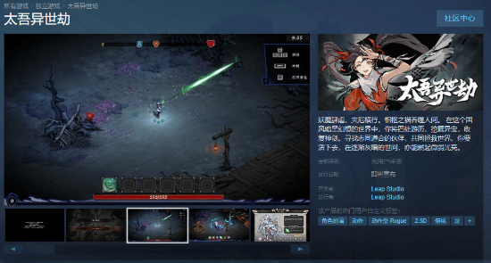 由水墨风动作rougelite好评佳作《墨境》的开发商leap studio打造的全新动作类rouge《太吾异世劫》的steam界面现已公开。游戏目前暂未公布发售日期。