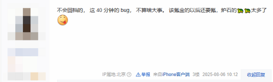 当然,也有玩家支持回档,认为此次事件影响恶劣,如果不回档怕是会损伤玩家对游戏的热情。