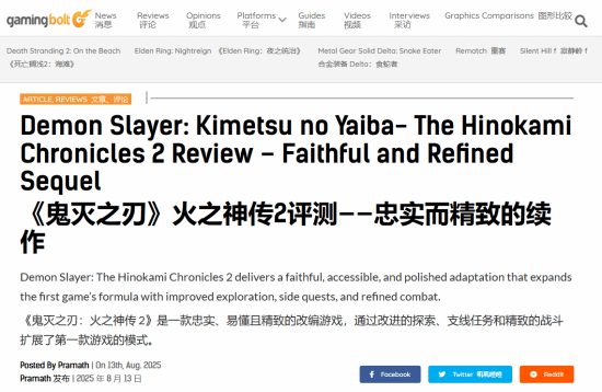《鬼灭之刃:火之神血风谭2》已于8月6日正式在steam发售,本作此前已登陆ps4 & 5、switch和xbox series x等平台。外媒gamingbolt近日也发布了游戏的评测报告,给出了8分的成绩并认为这是一部“忠实、易懂且精致的改编游戏”。本文摘录部分内容如下: