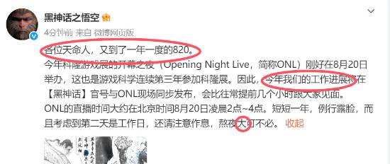 在今天早些时候,《黑神话:悟空》的官方微博发文宣布将参加科隆游戏展的开幕之夜。