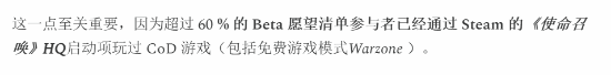 根据数据分析公司alinea analytics的消息称,目前steam平台上已有超过60万人预购了《战地6》,并且有270万人将其加入了愿望单,其中约167万人游玩过《cod》系列游戏(包括免费游戏模式《战区》),占比约62%!