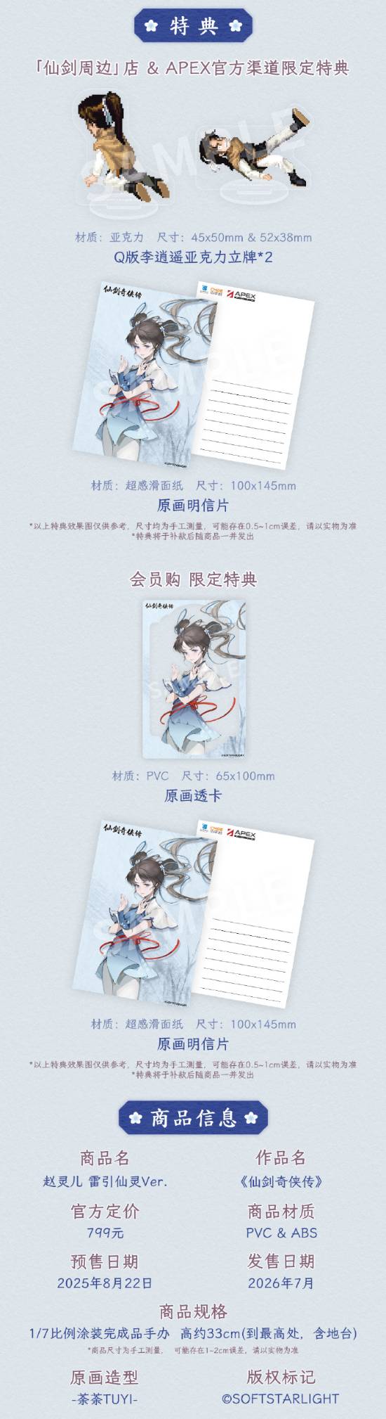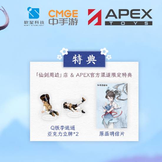 「仙剑周边」店&apex官方渠道额外附赠q版李逍遥亚克力立牌。