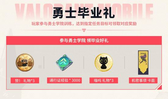 对于首次体验无畏契约独特战场的新兵,《无畏契约手游》还准备了针对性提升的勇士学院训练。全体玩家都可在此参与特训,达成指定任务目标还可领取卡面、通行证经验等勇士毕业礼,后续更多活动福利也可关注《无畏契约手游:源能行动》官号了解信息。
