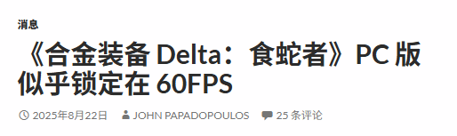 据dsogaming消息,多家媒体的pc版评测信息显示,《合金装备3重制版》在pc平台上似乎被锁定在60fps。