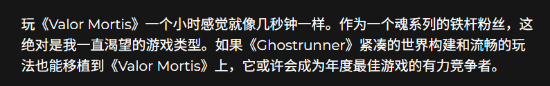 外媒insider-gaming发文点评了《幽灵行者》开发商one more level最新的第一人称动作游戏《不朽遗志》,称其实“近年最令人期待的类魂新作”。