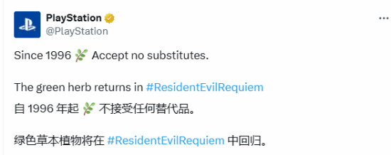草药是《生化危机》系列中标志性的恢复道具,是玩家在游戏里最重要的生存工具之一。8月24日,索尼playstation官方发布了一段小视频,宣布绿色药草将在《生化危机9:安魂曲》里回归,一起来看下。值得一提的是,《生化危机》官方也转发了这段视频,说道:“它可是非常可靠的老朋友。”