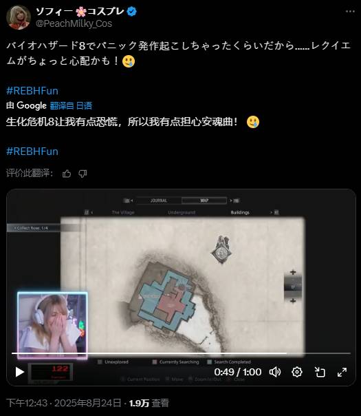 peachmilky也是心有余悸的表示:“玩《生化危机8》的时候就让我恐慌发作了……所以有点担心《生化危机9:安魂曲》了”