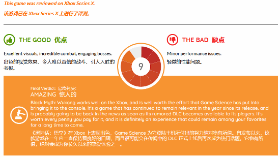 时隔一年,国产大作《黑神话:悟空》终于登陆了xbox主机,外媒gamingbolt也于近日发布了xbox series x版游戏的测评报告,给出了9分的好成绩,并评价其“令人满意”。本文简要翻译整理如下: