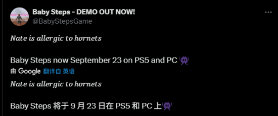 此前我们报道过,多款游戏因《丝之歌》定档而宣布延期,以规避与其撞车发售所带来的巨大风险。今天晚上,《掘地求升》工作室新作《一步一脚印》(baby steps)官方发文宣布,游戏的发售日期将从原定的9月9日延期至9月23日!