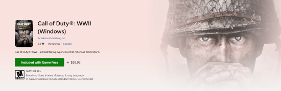 截至发稿前,《使命召唤14:二战》已经重新在微软商店上架,玩家可以加入game pass游玩或者花费59.99美元购买游玩。