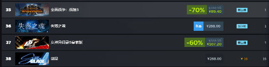 在主机端,《失落之魂》在ps港服商店畅销游戏中位列第12名。