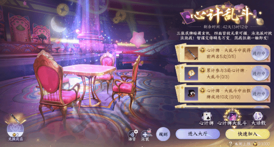 【心计乱斗】伴随全新【心计牌·大乱斗】玩法登场!三张底牌暗藏玄机,四面皆敌无章可循,泳池派对掀浪激战!智谋交锋瞬息万变,混战狂潮一触即发!