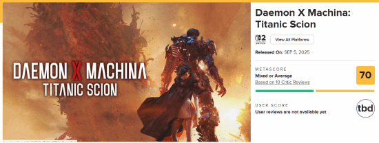 《机甲战魔》系列的最新作《机甲战魔 神话之裔》即将于9月5日正式发售,媒体评分现已全面解禁。截止至发稿时,本作在metacritic评分网站上的媒体均分为70分。