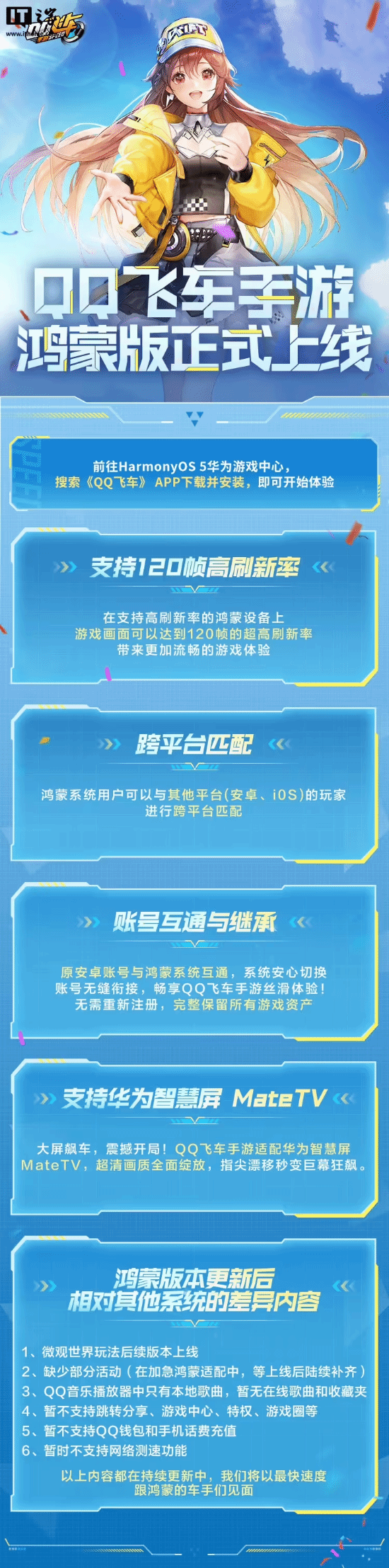 腾讯《qq 飞车手游》官方宣布,《qq 飞车手游》鸿蒙版将于 9 月 3 日上午 10:00 上线 harmonyos 5 华为游戏中心。官方称,原安卓账号与鸿蒙系统可轻松切换,所有游戏资产完整保留,全平台互通匹配。