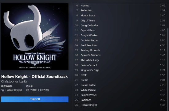 作为参考,《空洞骑士》初代本体的ost包含26首曲目,后续dlc的ost“诸神与梦魇”则包含15首曲目。也就是说,《丝之歌》本体的ost曲目数量是前作的两倍!
