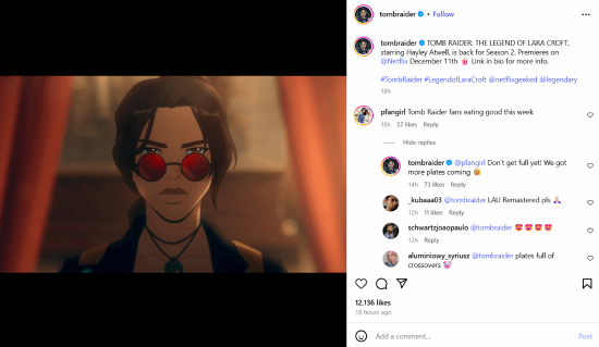 然而,这还不是全部。官方《古墓丽影》社交媒体账号发文预告称:“别急着吃饱!还有更多大餐在后面。”