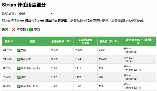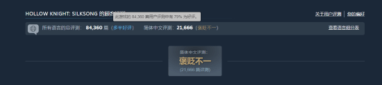 根据steam数据显示,《丝之歌》在steam平台的好评率持续走低,截止至发稿时简中好评率已跌至41%,“褒贬不一”。所有语言总评价也已经跌破80%,来到79%,“多半好评”。
