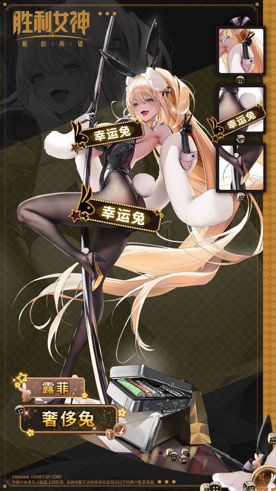 《胜利女神:新的希望》公布了新时装介绍——露菲·奢侈兔。为金币之战的升级纪念直播而装扮成兔女郎的露菲!