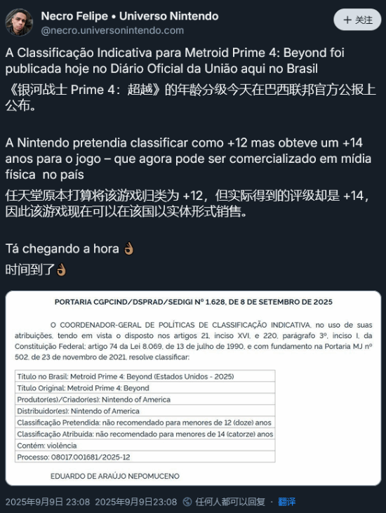 值得一提的是,另一位消息人士switchforce此前曾爆料称,任天堂将在本周五9月12日举行新一期直面会,并且他今天发新消息称可能会在明天官宣。至于届时《银河战士prime 4:超越》是否会亮相,就让我们拭目以待吧!