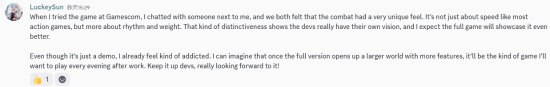 同时也有更多撰写短评的玩家对游戏的美术、战斗、打击感等元素给出好评,尽管目前的《山外山》还处在较为早期的demo阶段,但其展现出的素质与潜力已经足以吊起他们的胃口,让他们期待正式版的发售。