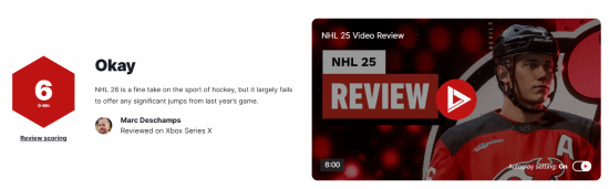 ea知名体育游戏《北美职业冰球》系列最新作品《北美职业冰球26》现已正式发售,ign为本作打了6分,认为游戏的表现算是比较出色,但相比去年的版本几乎未能实现任何重大突破。