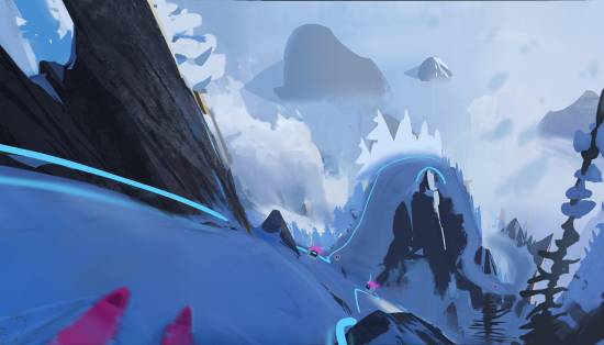 团队成员gordon wang在artstation平台分享了该作的概念图,从图中可以看到多处极具《ssx》特色的雪场地貌与滑道景观,其中既包含引擎内的实机截图也包含概念设计,足以让粉丝想象游戏的实际表现效果。