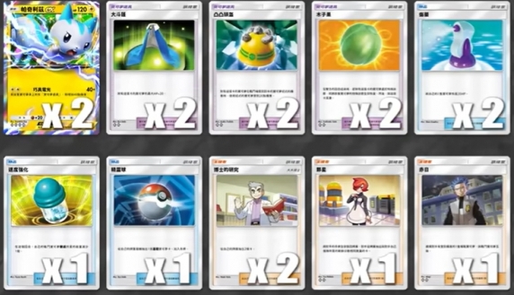 在 ptcgp 的 a2 版本中,帕奇利兹作为新卡,因其搭配装备卡能有较高打点能力,常被用于构建速攻卡组。以下是两种常见的卡组构筑方式: