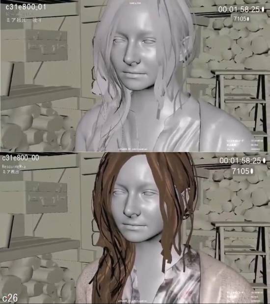 在泄露的素材中,最常见的是克里斯解救米娅的场景。根据duskgolem的描述,该片段存在多个不同版本,还包括克里斯可操作章节的开场部分。除此之外,还有: