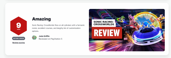 《索尼克赛车:交叉世界》的媒体评测已经解禁,ign为本作打出了9分的超高评价。