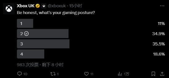 你平时用手柄玩游戏时,习惯用什么姿势?是姿势端正的“正坐”,还是舒舒服服躺在椅子上?或是直接接个大屏幕,趴在床上玩?今日,xbox官方推特发文征集,“你在玩游戏时一般会用什么姿势?”