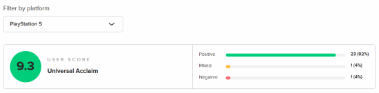 目前游戏的m站玩家评分已经解禁,截至发稿前,玩家评分给到了8.4分(pc)、10分(xsx)、9.3分(ps5)。