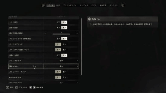 该选项共提供三个不同档位,不仅能影响血液飞溅的浓度,还包括肉体损伤表现与肢体切断的呈现方式。将其调至“最大”后,玩家便能够体验到与海外版一致的极限效果。与此同时,steam商店页面上原本关于“日本版与海外版差异”的提示说明已被移除。