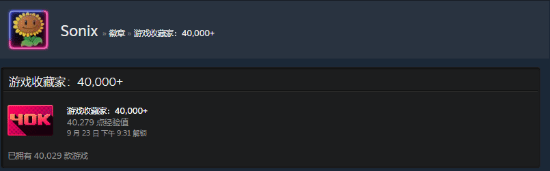 steam为用户提供了一个按照游戏数量划分的徽章系统,sonixlegend已经完成了该系统中的最高等级——40,000款游戏。要想进入steam的前100名收藏榜单,玩家至少需要拥有19,000款游戏,而进入前十名则需要达到33,000款。