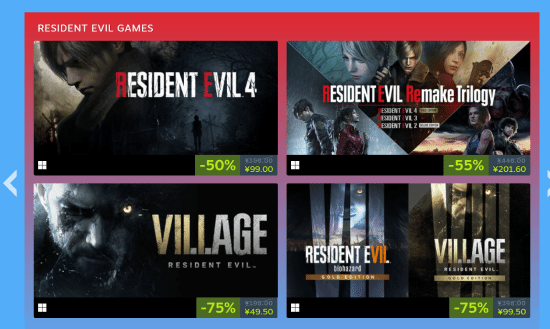 《生化危机》系列也迎来了高额折扣,其中包含《生化危机2:重制版》《生化危机3:重制版》以及《生化危机4:重制版》的组合包仅需201.6元,《生化危机7&8》组合包仅需99.5元!