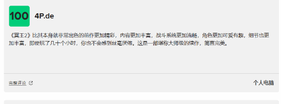 以上百分评测均来自于pc端,截止到目前pc端评测分数依然维持在100分的高分。
