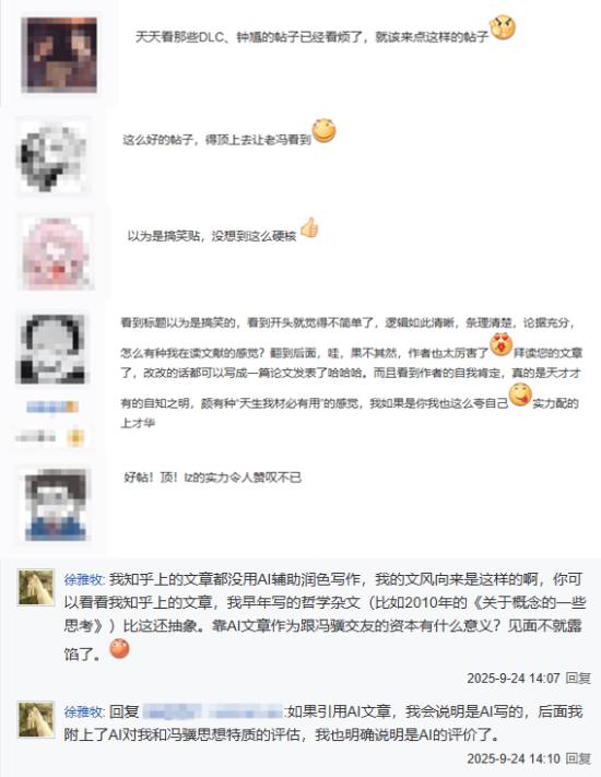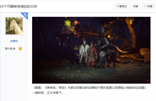 鉴于冯骥目前仍旧处于单身状态,贴吧吧友“徐雅牧”发布了一篇学术帖文,从心理学的多个角度分析了冯骥单身的原因,吸引了众多玩家前来围观。一些玩家认为这篇帖文的逻辑清晰,且论据充分,撰写的非常专业,有玩家表示:“以为是搞笑贴,没想到这么硬核。”“这么好的帖子,得顶上去让老冯看到。”