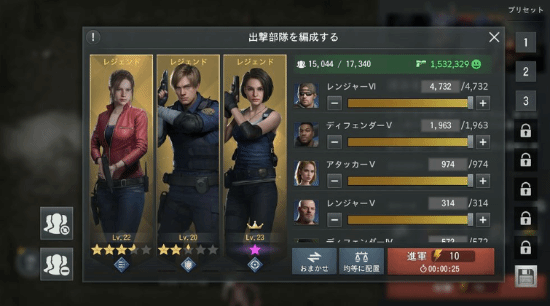 除了探索,本作的核心玩法是战略对战。玩家需要部署单位,抵御源源不断的敌人。登场角色包括里昂、克莱尔、吉尔等系列人气角色。玩法接近塔防:玩家只需进行单位的部署、调整位置和释放技能。关卡还存在光照机制——黑暗区域会降低命中率,使用手电筒照亮则能提升命中率。