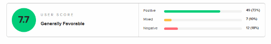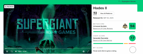 《哈迪斯2》正式版的m站玩家评分已经解禁,截至发稿前,玩家均分为7.7分,其中pc平台为7.9分,switch 2平台为7.7分。一些玩家表示,《哈迪斯2》正式版相较于前代来说进步非常大,且能够成为今年年度最佳游戏的有力竞争者,但也有玩家认为,《哈迪斯2》正式版相较于前作没有什么新鲜感,剧情略显平淡。
