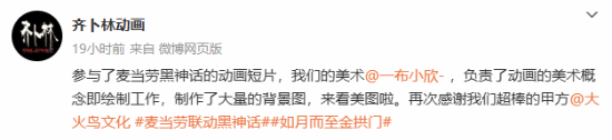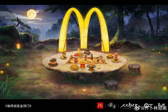 《黑神话:悟空》和《麦当劳》的联名现已正式上线,此前报道,官方发布了一则联动小动画《如月而至金拱门》,在动画里,天命人带着六妹前往六六村,六丁六甲出场还给六妹制作了麦当劳汉堡,猪八戒和二郎神也出现在了广告中。
