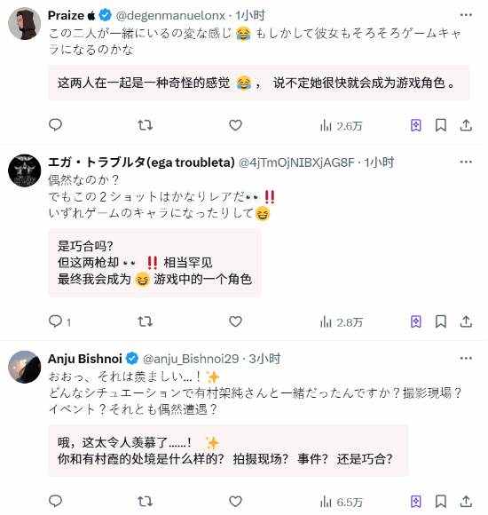 不少人表示“这两个人同框真的有点奇妙”,甚至有人打趣道:“难道她也要成为游戏角色了?”